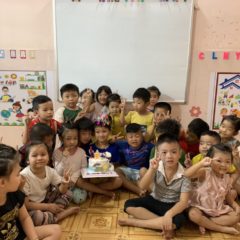 Hình ảnh tổ chức mừng sinh nhật các bé trường mầm non Bông Hồng.