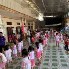 Hình ảnh các bé trường mầm non Bông Hồng tập thể dục sáng …